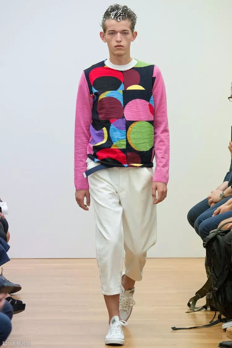Comme des Garcons Shirt 多颜色的拼接永远是少年所追求的风格,花样年华就应该五彩缤纷,一条颜色干净的白色裤子巧妙地中和了这种多彩的凌乱。
