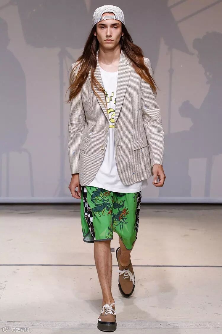 爱开玩笑的Moschino擅长用鲜亮的色彩和有趣的图案冲撞视觉,整体展现明媚阳光之感。Logo、笑脸、卡通图案、流行印花等元素创造了Moschino 2016春夏男装系列。