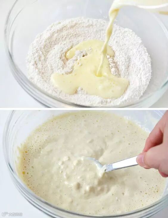 这时候你可以在盆中放入100g面粉,加水,搅拌成糊状。