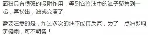 煎炸过鱼或者肉的油会变得浑浊,甚至还会有腥味。想要油再回清,你只需要一点面粉。