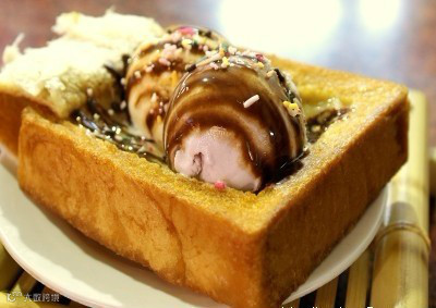 厚片吐司1片,冰淇淋1球,蜂蜜1大匙