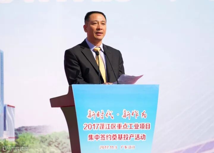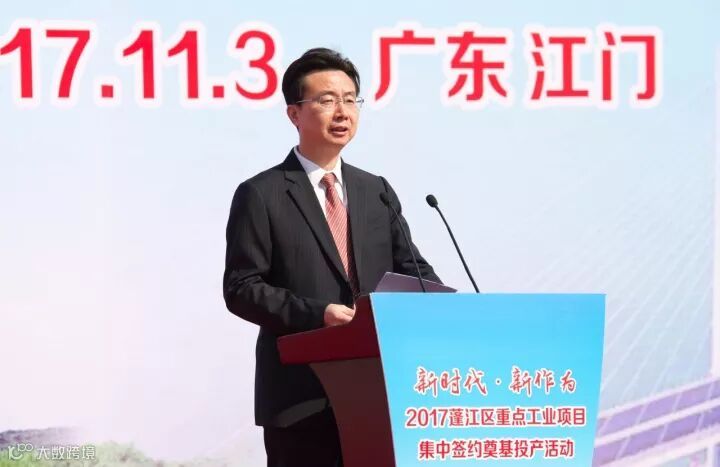 蓬江区委书记、滨江新区党工委书记温伟文表示,作为江门市的中心城区,蓬江区具有天时地利人和的天然优势,得到了市委、市政府的大力支持,也承载了江门市经济社会发展标杆的重托。市委、市政府要求蓬江区树立强烈的支撑意识,调整好发展思路,为我市的加快发展担起更大的责任。我们也有条件、有信心、有能力做得更大、更快、更好!这次签约投产仪式将全面开启蓬江区新一轮经济发展的序幕,推动更多优秀企业陆续在蓬江落地生根、开花结果,掀起招商引资和项目建设的新热潮,促进蓬江区经济发展上一个新的台阶。
