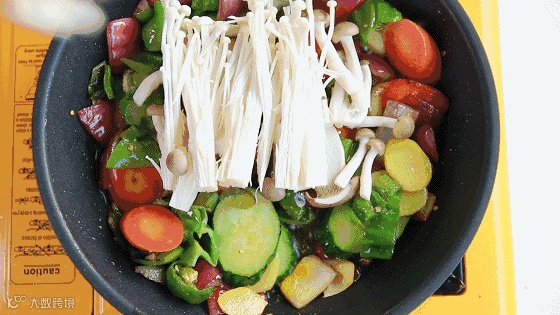 9、加入喜欢的菇翻炒,比如金针菇、香菇