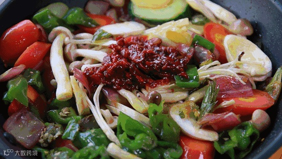 10、加入豆瓣酱、辣椒,如果不能吃辣,就可以不放辣椒
