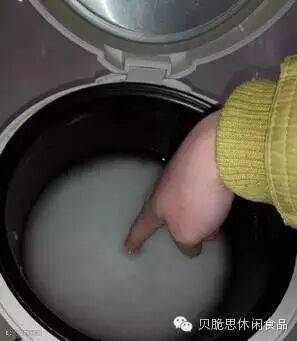 第三大秘籍——米和水的比例:蒸米饭时,米和水的比例应该是1比1.2的量。将食指放入米水里,只要水超出米有食指的第一个关节就可以。