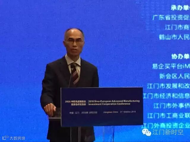 邓伟根:欧洲有创新资源、先进技术、高端人才,而江门有区位优势、广阔市场、良好环境和高效服务,特别是有中欧(江门)中小企业国际合作区这一对外合作平台,两地合作一定会擦出绚丽的火花。