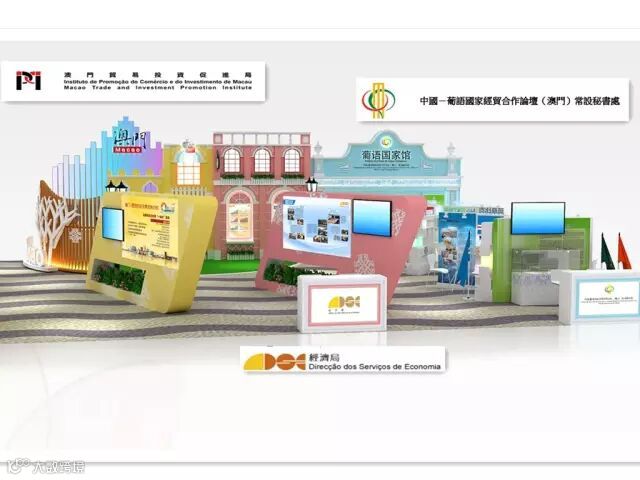 ▲主題展區包括:澳門新聞局、貿促局、經濟局、旅遊局、中葡論壇等。