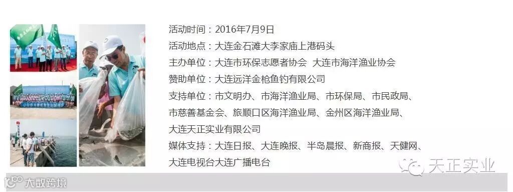 据知,2016年7月9日,由大连市环保志愿者协会 、大连市海洋渔业协会主办的“大连市第二届公众参与'增殖放流'环保公益活动”将在大连金石滩大李家庙上港码头举行,诚挚邀请社会各界环保爱心人士前来参与!