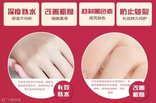 适合人群:肌肤干燥,手部出现细纹,毛孔粗大,干裂等症状均可使用。