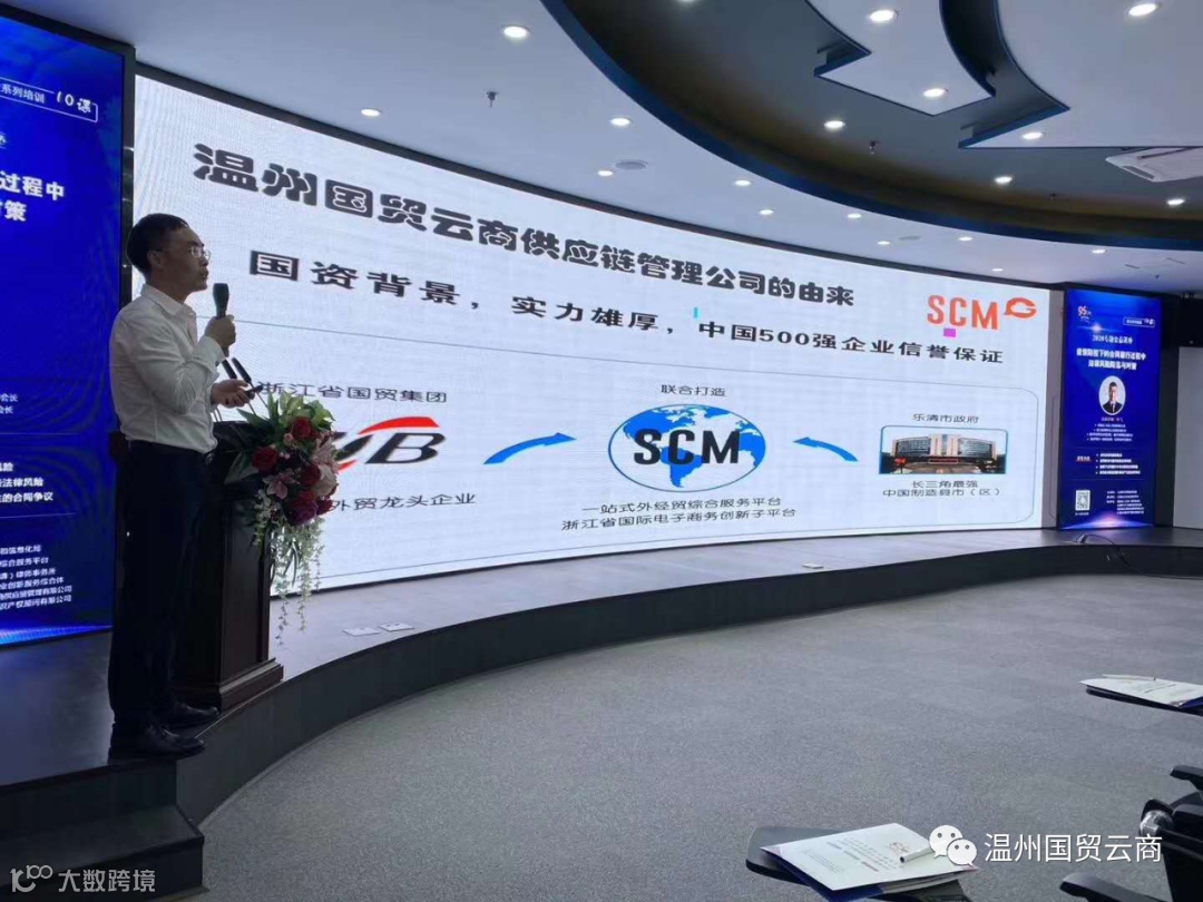 借助政府搭建的这个促进经济的交流平台,温州国贸云商供应链管理有限公司总经理项光忠向到会的领导和企业家分享了《外贸供应链的创新与发展》,回顾了中国从传统外贸到供应链外贸不断创新的发展历程。温州国贸云商供应链管理有限公司为响应国家“一带一路”战略,平台在乐清应时而生,作为乐清市政府和浙江国贸集团联合打造的乐清本土唯一国资背景的外综服平台,项光忠总经理详细介绍了公司成立的由来、近年来的业务发展以及如何为企业进行出口贸易提供增值性服务。同时还与在座的企业家们交流分享了当前疫情下如何保障外贸订单安全准时交付的方法。