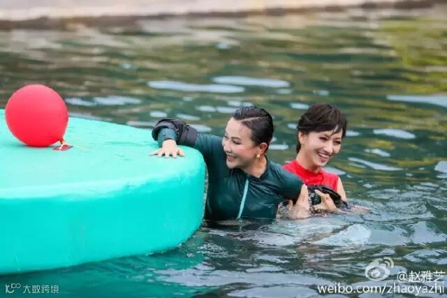 和刘嘉玲在水中争夺气球,
