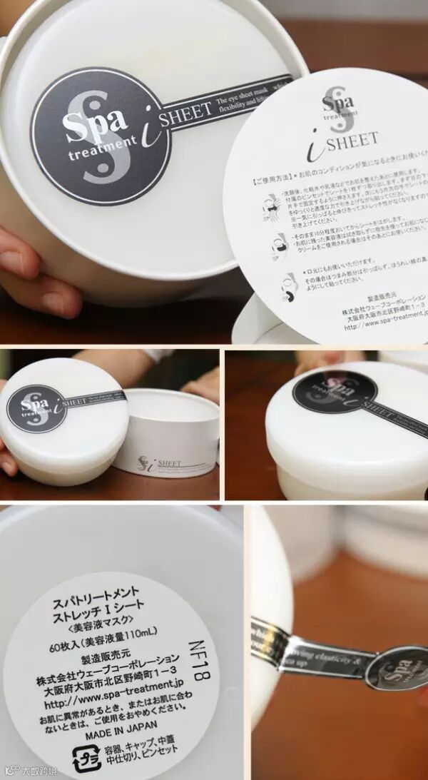 拧开盖子,Spa treatment贴心地配置了小镊子。无纺布结构,无香精、不含矿物油及活性界面剂,无添加纯净环保概念同时减少了致敏源。眼膜的剪裁使贴合密实度增强,眼尾的延伸,更可以完全照顾到眼尾纹。PH值约6-7,接近肌肤,足够温和。