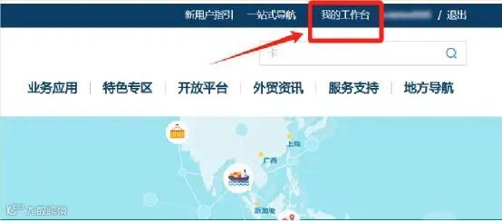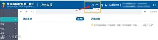 2.在货物申报、海关特殊监管区域系统顶部,找到工作台图标。