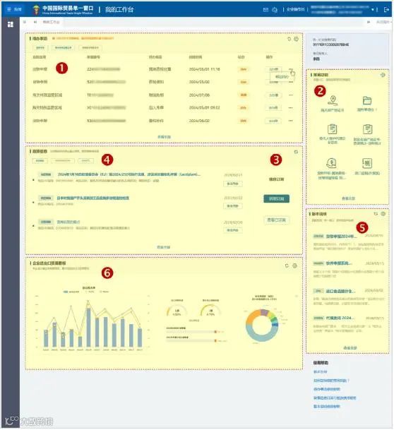 可定制货物申报待办事项通知(包括查验、重传补传、拟证出证、电子底账、属地查检与属地查检处置等)、海关特殊监管区域物流账册延期提醒。定制成功的内容,汇总推送到工作台,用户可在此进行查看、跳转到办理页面等操作。