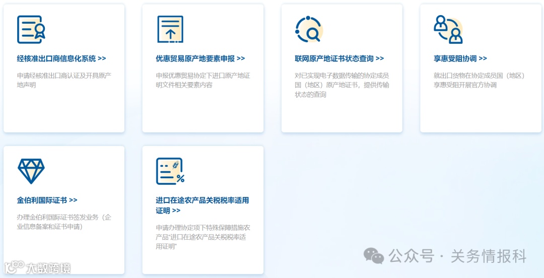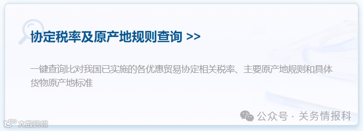 一键查询比对我国己实施的各优惠贸易协定相关税率、主要原产地规则和具体货物原产地标准。