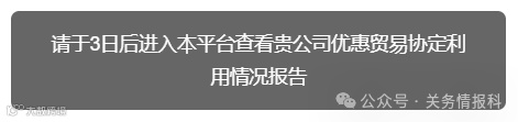 订阅优惠贸易协定利用情况分析报告,并通过“单一窗口”APP接收。