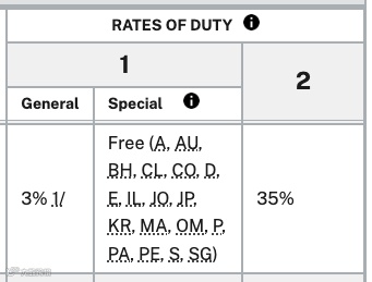 上图可以看到,美国HTS的关税“Rates of Duty”栏处,共有 2 栏:
