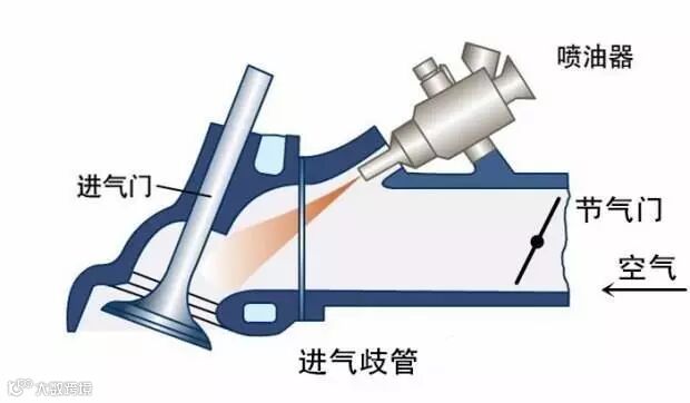 喷油嘴将燃油注射进进气歧管(进气歧管喷射)或气缸内(缸内直喷),待和空气混合后,火花塞将混合气在气缸内点燃,于是汽车就有了动力。