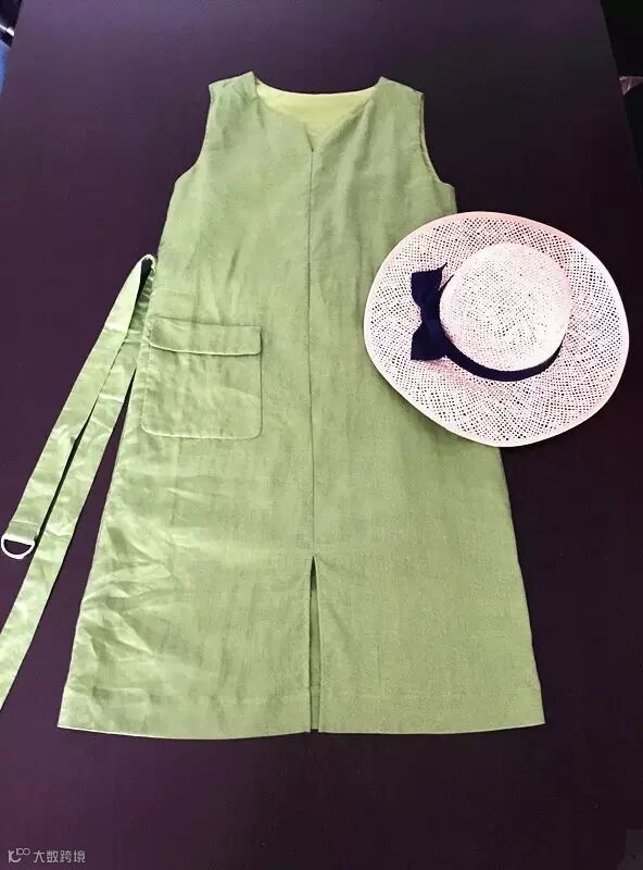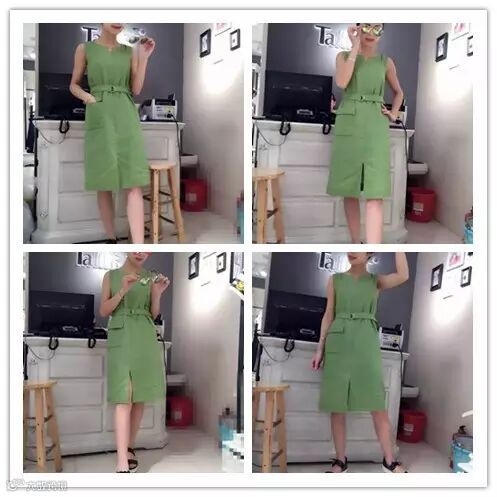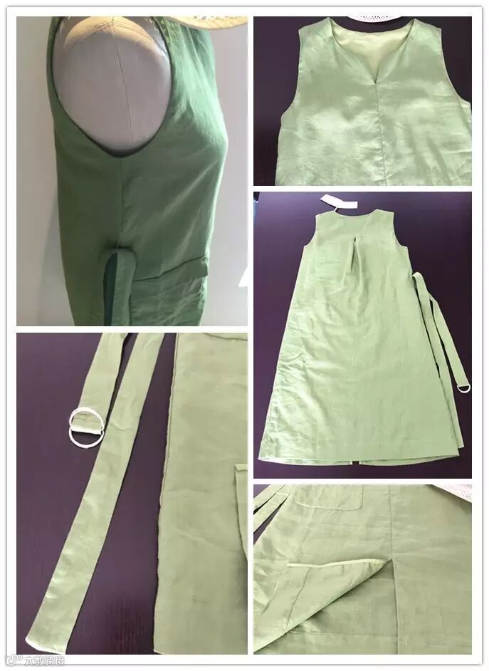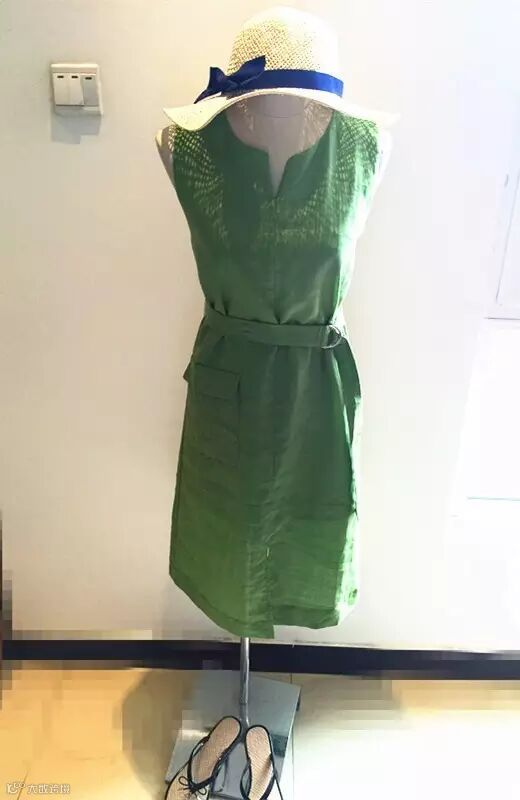 第一款棉麻材质绿色长裙 有腰带,可系可不系。折扣价格172元/件,号码有s、m、l、xl码(可加微信:15011097920)