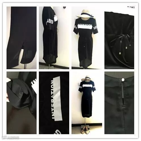 第三款是黑色连衣裙 有内衬,腰部抽绳,雪纺材质。价格是159元/件,号码有s.m,l.xl码(可加微信:15011097920)