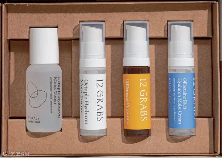 ◆一套包含12GRABS的爽肤水、精华液、面霜和精华液