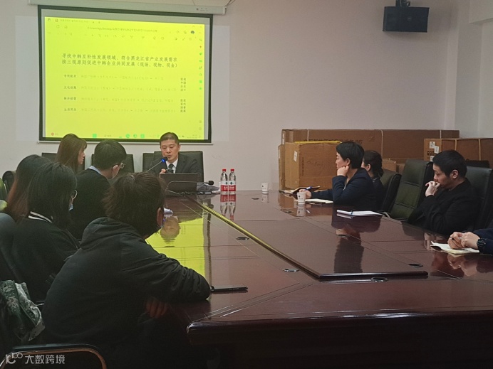许馆长首先介绍了哈尔滨韩国贸易馆在中国的建设历程,以及开展贸易信息传递,市场调研服务、跨国投资、技术合作和商务联系等多种贸易促进活动的主要工作内容,同时介绍了中韩当下的进出口贸易现状,特别是在技术出口领域,中国是除美国外与韩国技术贸易最为频繁也最为密切的国家,尤其是以手机为主的电子产品。