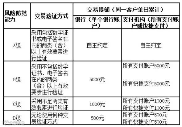 近日,央行官网发布了《中国人民银行关于印发的通知》配套印发相关技术规范,央行对于使用动态条码(如手机上实时生成的条码)进行支付的,风险防范能力根据交易验证方式不同分为 A、B、C 三级,同一客户单日累计交易限额分别为自主约定、5000 元、1000 元;使用静态条码进行支付的,风险防范能力为 D 级,无论使用何种交易验证方式,同一客户银行或支付机构单日累计交易金额应不超过 500 元。新规自2018年4月1日起实施。