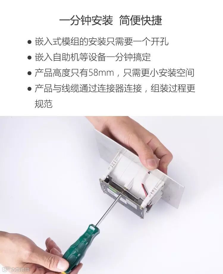 微光互联二维码扫描模组C100-H,独立自主知识产权的二维码解码芯片,支持RS232,USB,WIFI,蓝牙输出;扫码灵敏高效,360度扫描,无需刻意对准,远一点、近一点、偏一点、斜一点都可迅速识读,每秒100次飞速扫描体验,可快速扫描纸质、屏幕、金属、DPM二维码,免受光线影响;快速安装设计,支持一体机自助设备嵌入。