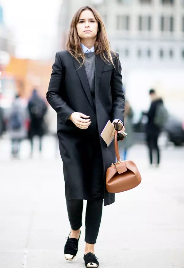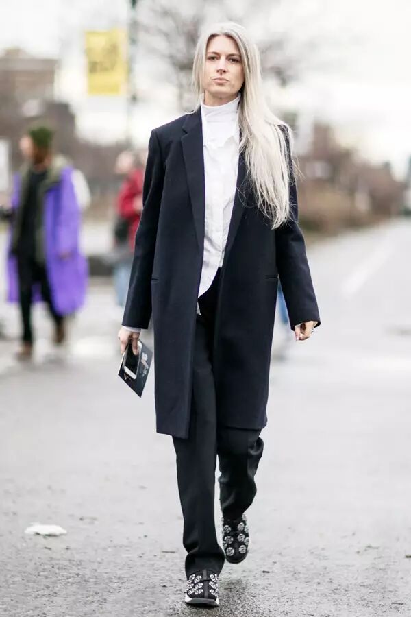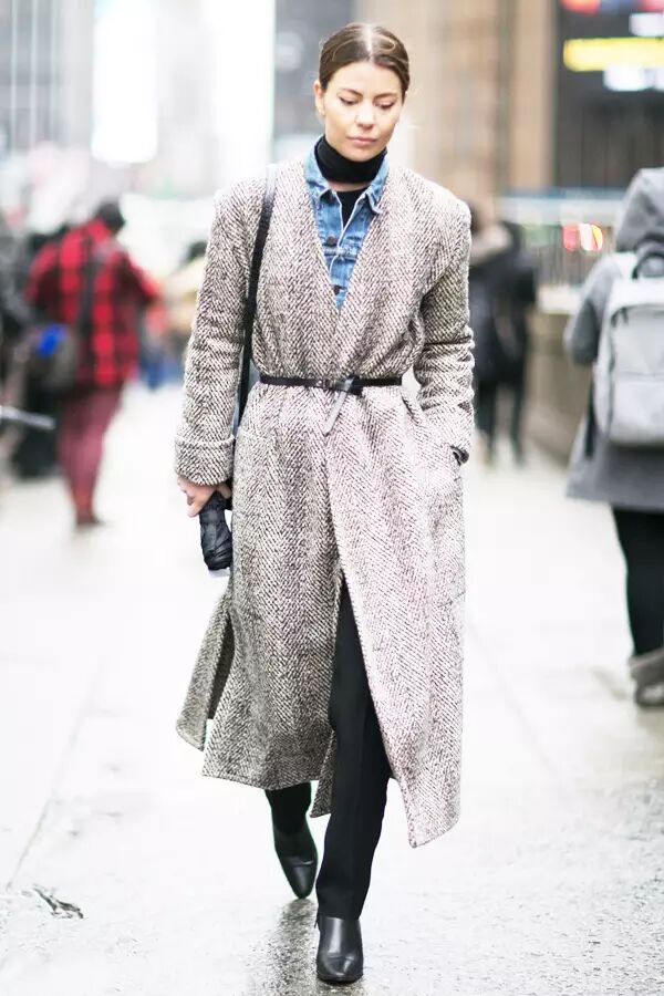 高领衫、瘦腿裤、大衣的组合经典且简单粗暴,睡过头的日子随便穿永不出错。