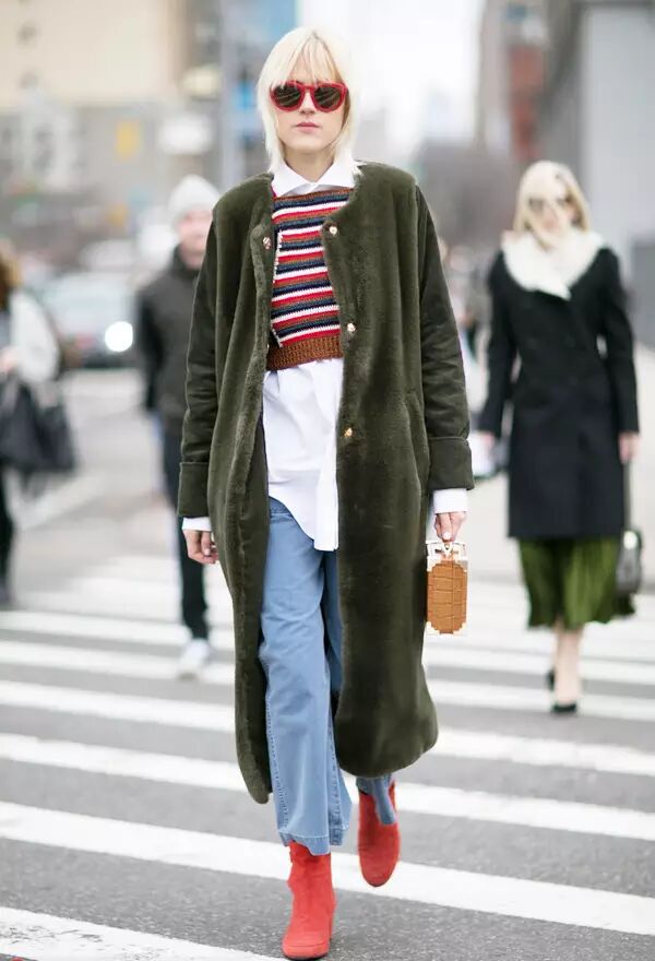 想要增添活力,不妨将大衣改成剪羊毛外套、棒球外套等短款。