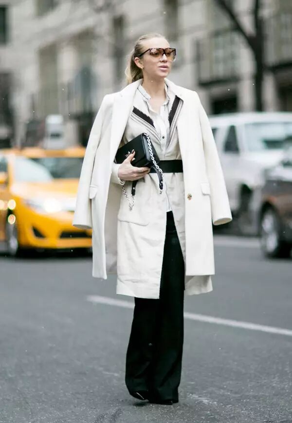 层次感不光可以在上半身动心思,阔腿裤搭配裙装也很有趣。记得宽松的款式和阔腿裤更配。