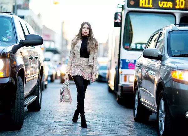 当然如果你要出入的场合需要你有足够气场,那就二话不说蹬上双细高跟,深V内搭也为你的气场加分。