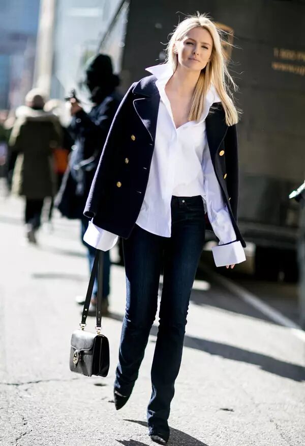 衬衫、毛衣、牛仔外套……黑色牛仔裤搭配起来都毫无违和感,单宁的硬挺材质跟赘肉说byebye~~~