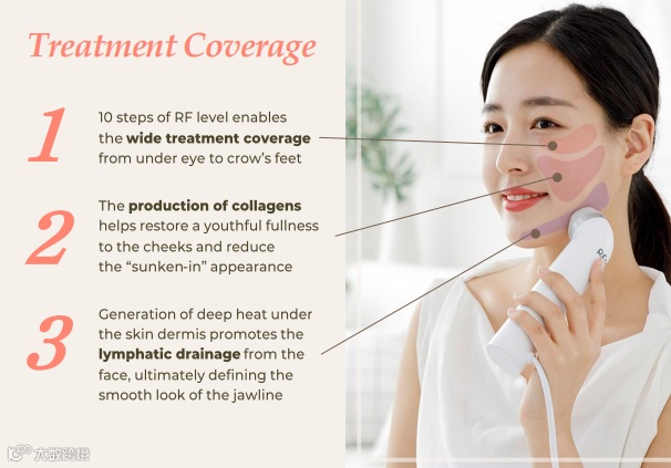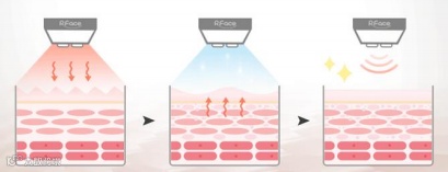 0.5 MHz数字射频深入皮肤,渗透到目标组织,通过激活皮肤细胞,使其升温,刺激胶原蛋白的产生射频+ LED +振动