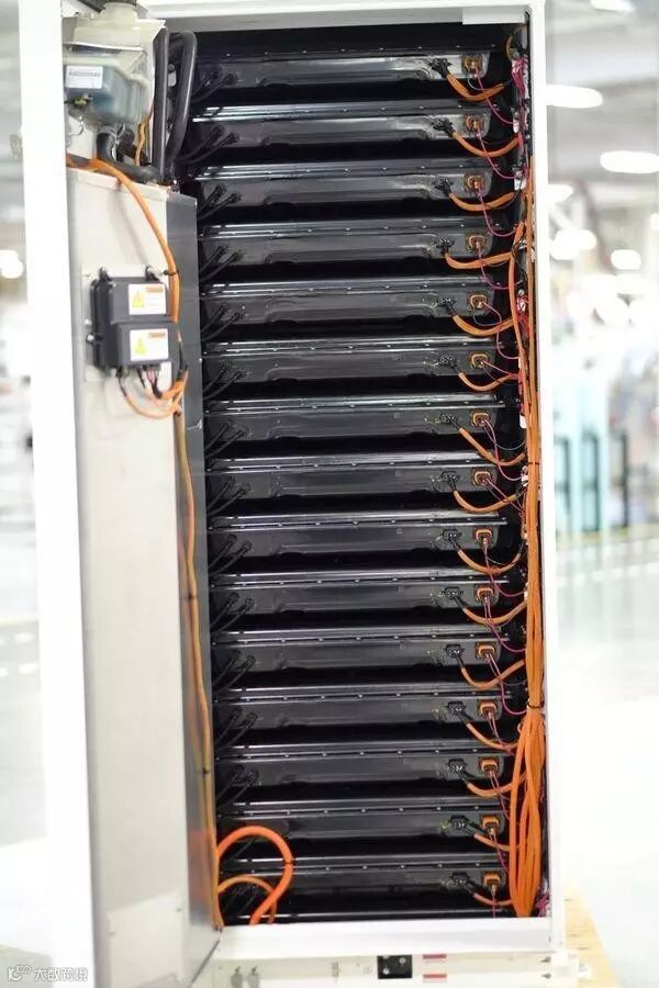 可以明显看到Powerpack是15个前面那种电池组并联在一起,推测Powerwall中只有一个电池组,因此不难推算出一个这种电池组的存储量是6.6kWh,所以15x6.6=99 kWh刚好一个Powerpack的容量。