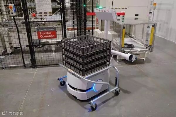工厂里运输电池组的机器人: