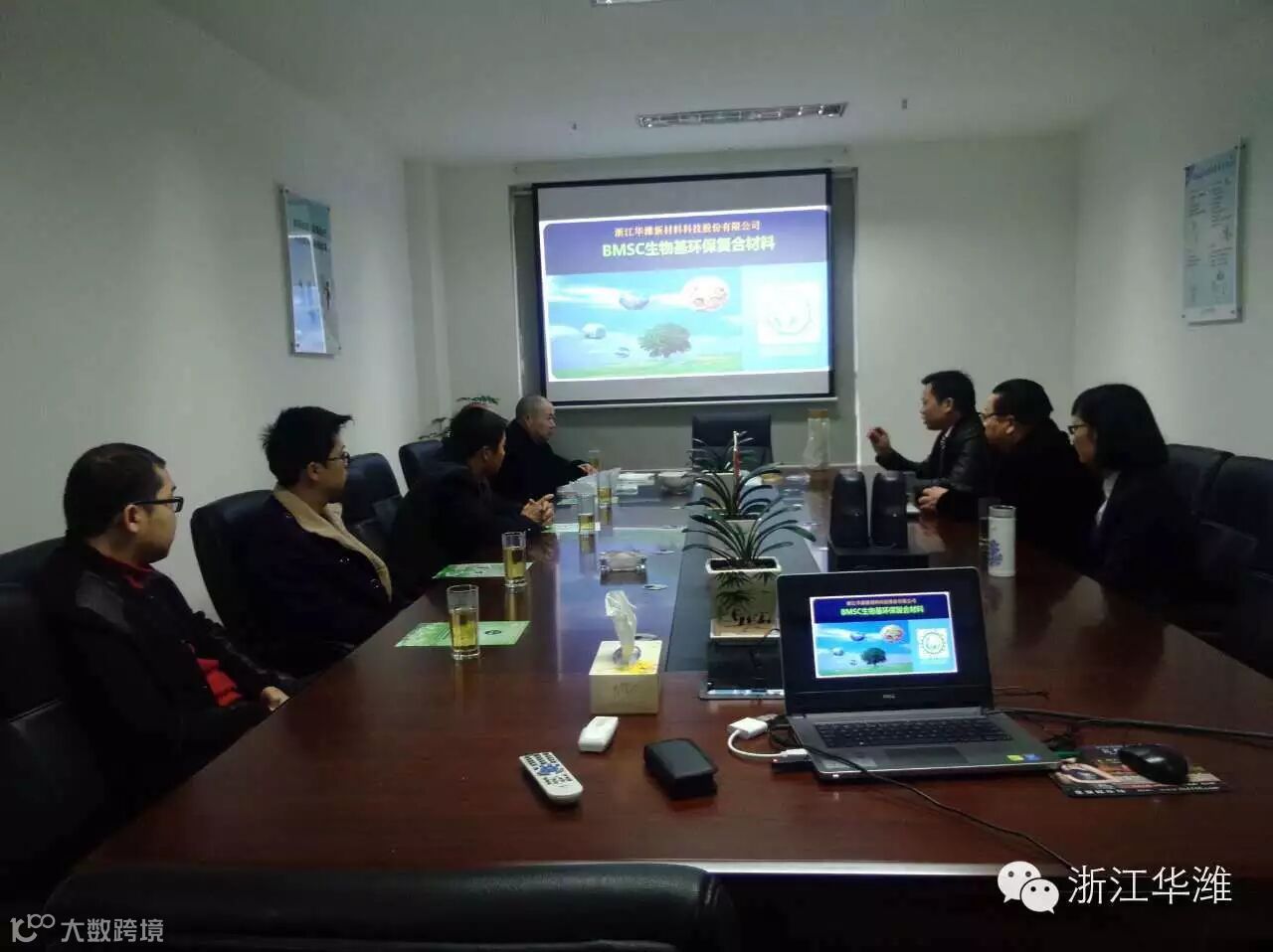 浙江华潍副董事长邬大孝代表公司董事会热忱欢迎来宾们来司考察,常务副总王总就BMSC的核心技术、产品特性和“四网合一”互动营销的新型商业模式进行了详细讲解并与嘉宾互动,来自宁波余姚裘皮城的赵总、北京开办服装商场的赵总、温州金龙机电(上市)的叶总等嘉宾充分了解了BMSC后,高度认可华潍BMSC的领先技术及其绿色环保产业的广阔前景,并表示在产品代理、原材料供应和技术合作方面有强烈投资愿望,他们纷纷表示乐清人习惯家族式抱团投资,一向民间资本雄厚,而眼下整体经济低迷,好的投资项目不多。像BMSC这样高新技术、绿色环保的产业既符合国家发展趋势,与保护和治理环境污染紧密相关,又是贴近百姓生活,节能减排,用低成本、高性能的BMSC生物全降解复合材料取代传统的塑料制品,产品附加值高,市场潜力大,来宾们表示一致看好BMSC的投资前景与美好未来。