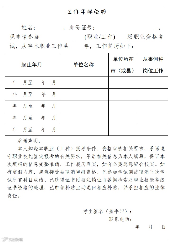 (1)考生在报名系统依据申报条件,填写相关信息并提交相对应的学历证明文件(毕业证书、学历证书或学信网查询报告)、工作经验证明文件(附件1,填写信息后打印手写签名加盖手印及所在工作单位公章)、身份证明文件、相关职业资格证书等原件的电子扫描文档,提交报名后下载系统生成的《职业技能等级认定申请表》(附件2,打印、手写签字加盖手印)上传到相应位置。