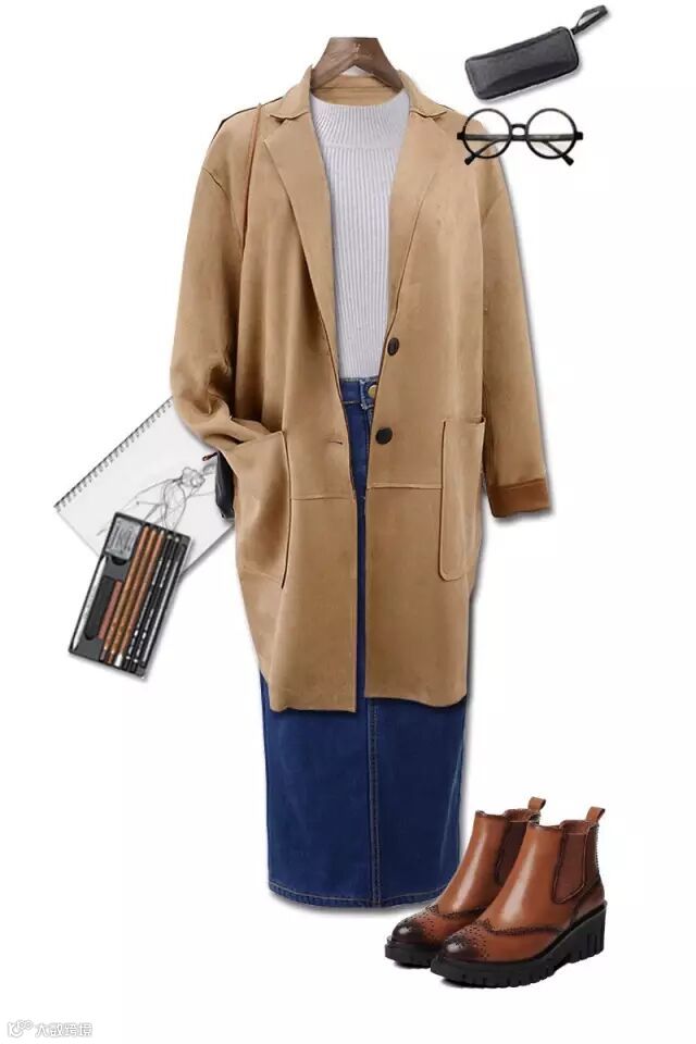 搭配推荐:牛仔加绒半身裙搭配针织半高领打底毛衣,搭配毛呢中长款大衣,搭配球鞋或雪地靴,就有时尚休闲的feel~
