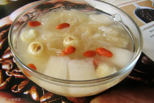 功效:此汤水具滋润养阴的功效,对干燥、脱皮的肌肤最有帮助,能令肌肤重现光泽,补充肌肤失去的水分。