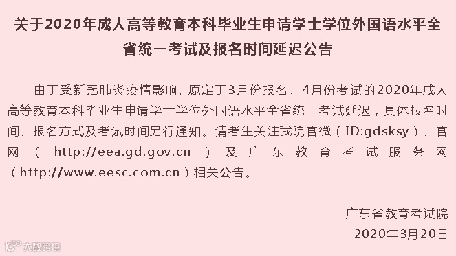 今年由于疫情影响,原定3月份报名,4月考试的学位外语考试延迟,具体考试时间另行通知。