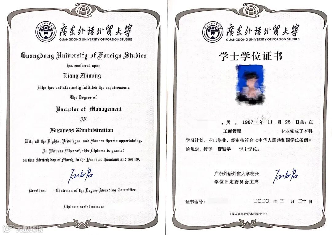 广东外语外贸大学学士学位证书样板