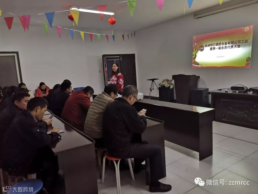 2019年12月11日下午15:30,株洲明日硬质合金有限公司工会成立暨第一届会员代表大会在公司会议室隆重召开,公司总工程师、技术副总、生产副总出席了会议,会议由综合部黄禹主持,公司工会会员代表共40人参加了会议。