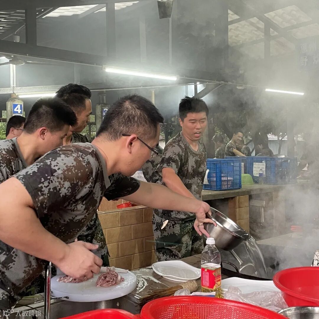 92人的团队,又分成了几个小组,进行厨艺大pk。有人洗菜,有人切肉,有人掌勺,有人生火,整个厨房的氛围其乐融融。