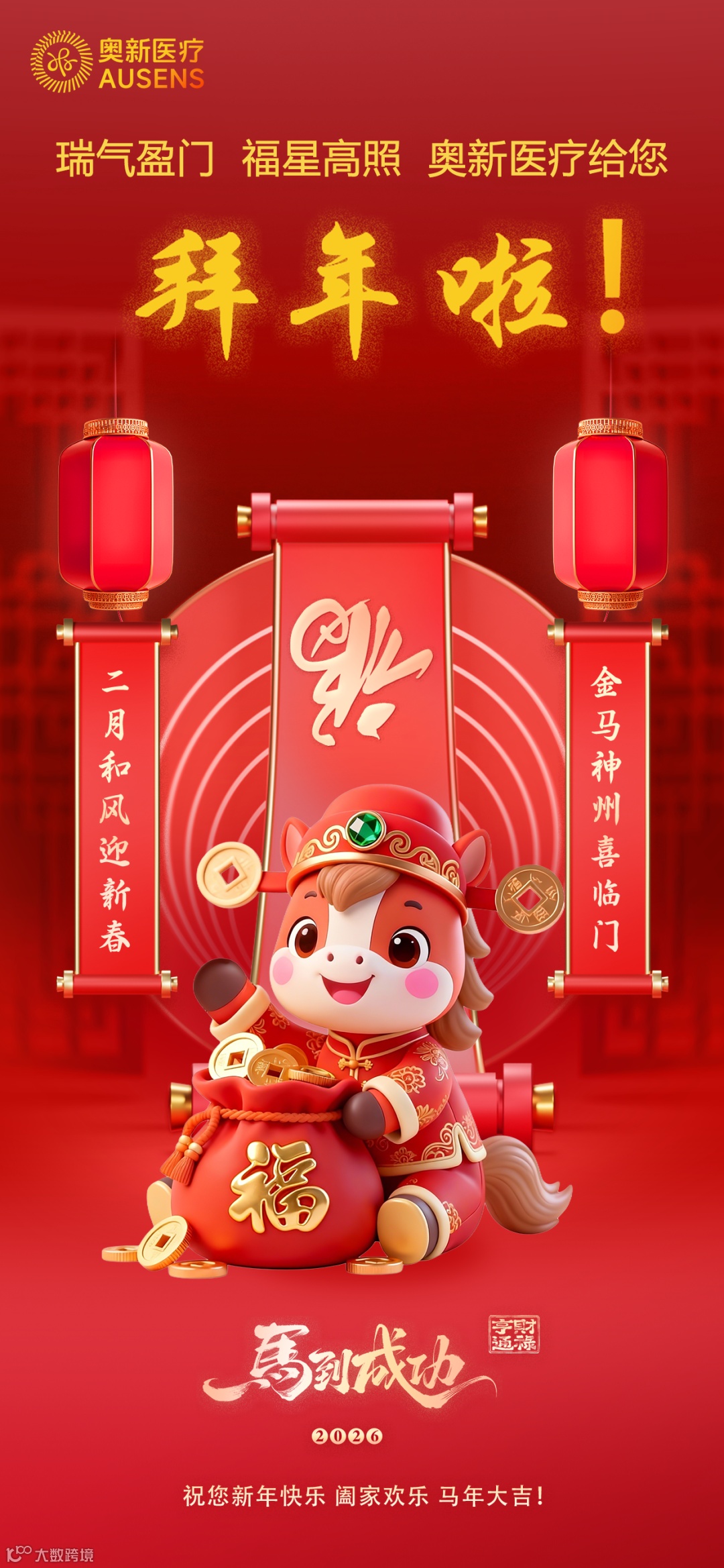 值此2026马年新春,奥新医疗向各级政府部门、合作伙伴及万千家庭,致以诚挚祝福!
