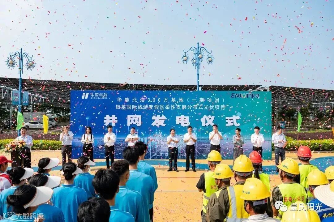 项目位于广西北海市银基国际旅游度假区,为华能北海300万千瓦基地一期项目,占地面积约9万平方米,光伏装机容量为14.6兆瓦,采用“自发自用,余电上网”的发电模式,年均可实现发电量超1752万千瓦时,每年可节约标准煤约4825.52t,减少二氧化碳排放量约12878.6t。