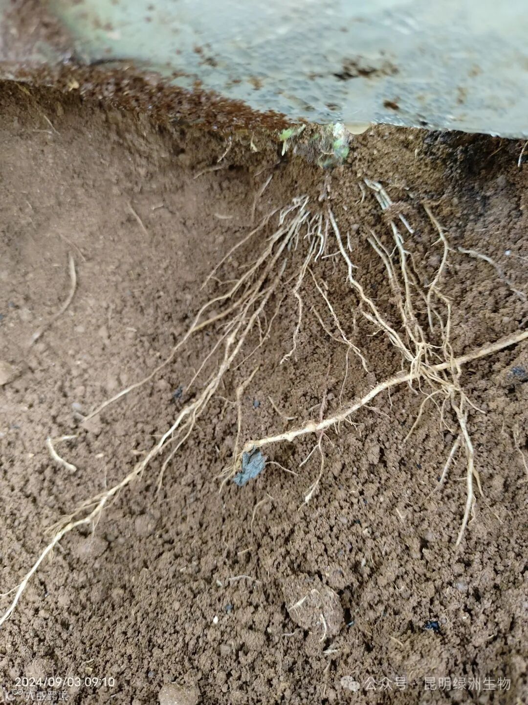 根部症状:受害根部会形成不规则的瘤状物,这些瘤状物初为白色,后呈黄褐色至黑褐色。根系的正常机能被破坏,导致植株地上部生长衰弱,严重时植株枯死。