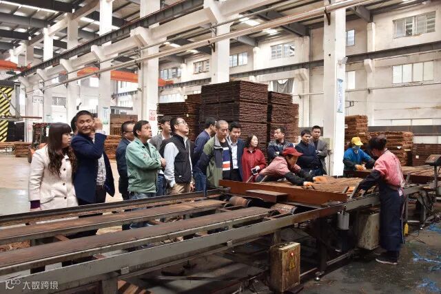 永裕竹业项目经理郭兴隆率客商走进永裕现代竹产业生态博物馆、各制造生产车间一 一介绍永裕产品、制造流程等。