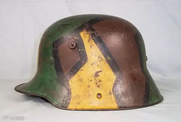 德军突击队员喜欢在M1916钢盔上绘制迷彩图案,以“碎片”类型为主,当时军方并没有制定伪装标准,因此很多迷彩图案都是手绘的。