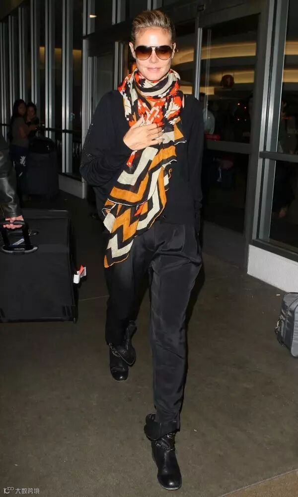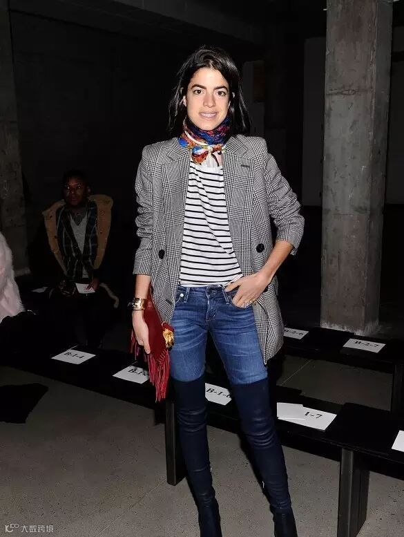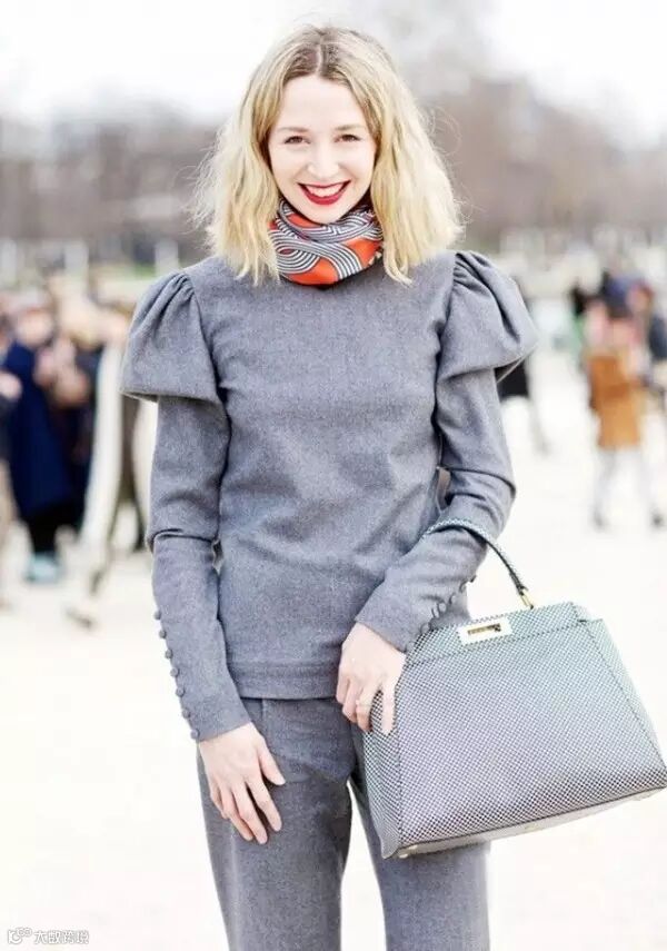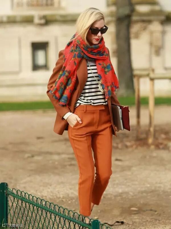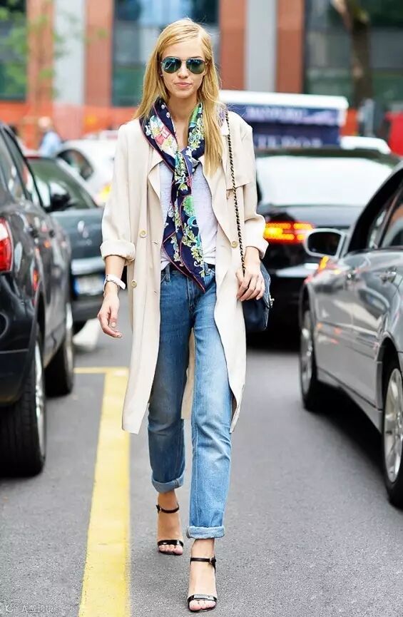 2. 小丝巾绕脖露出一截,视觉中心立马上移!